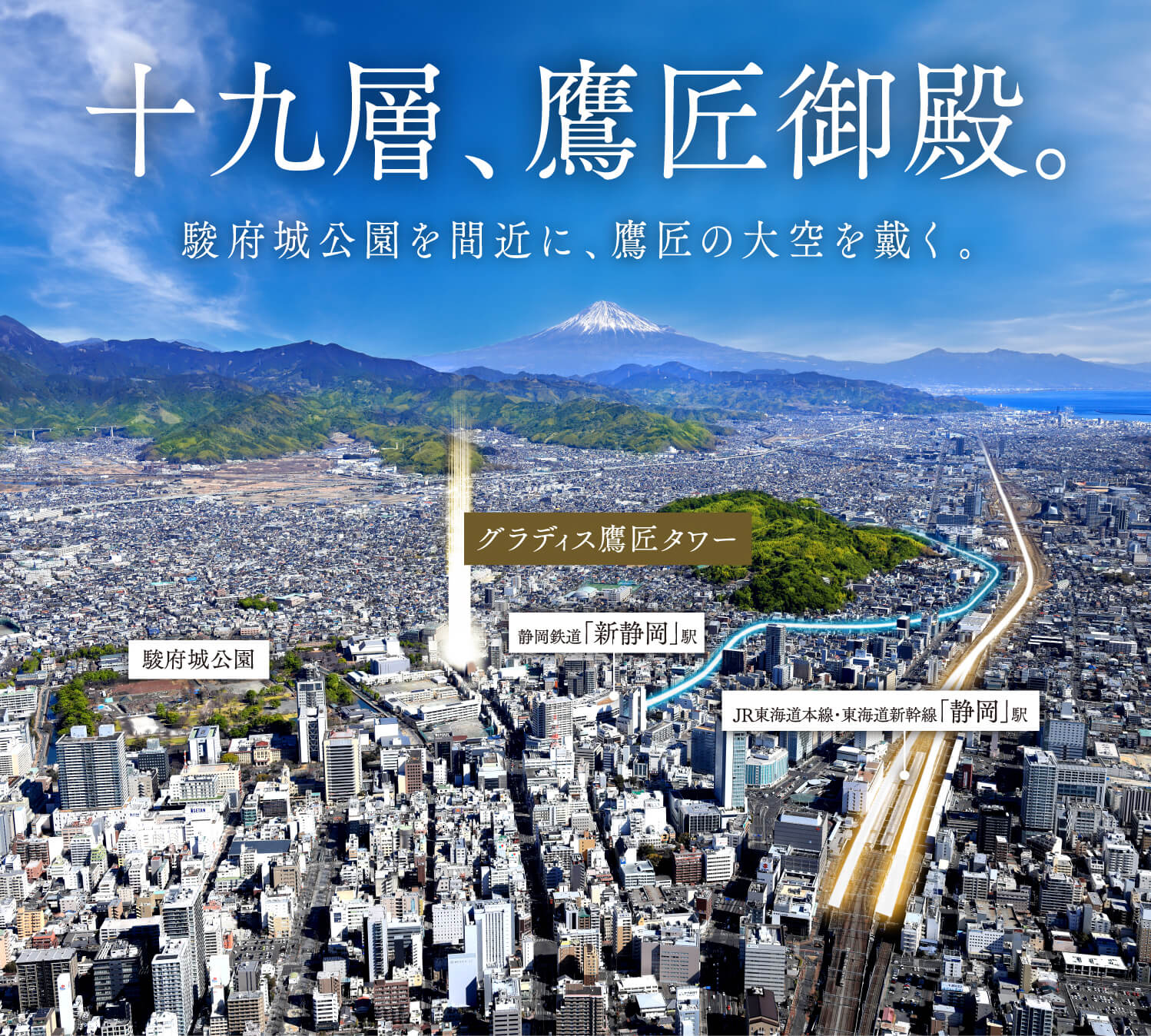 - ※1.静岡市葵区鷹匠1丁目~3丁目内で、16階以上の分譲マンションは本件が初となります。(2025年4月現在:新東通信調べ)