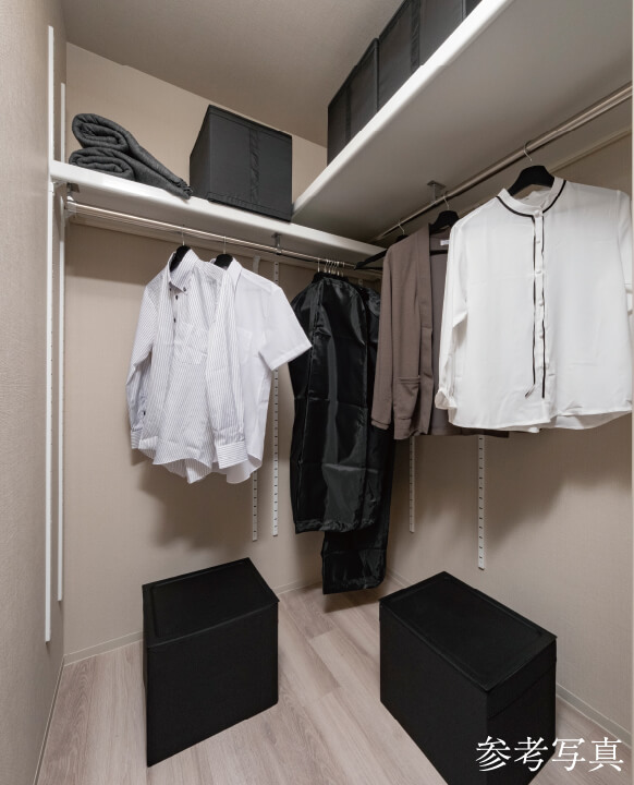 衣類や小物、スーツケースも収納でき、機能的に使えて朝の身支度もスムーズに。