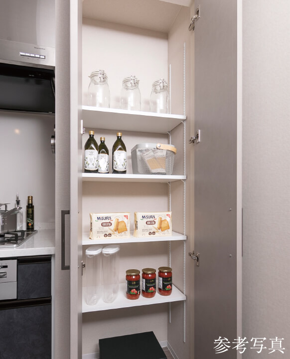 食器や調理器具、食材のストックに便利。すっきりとしたキッチンを演出します。
