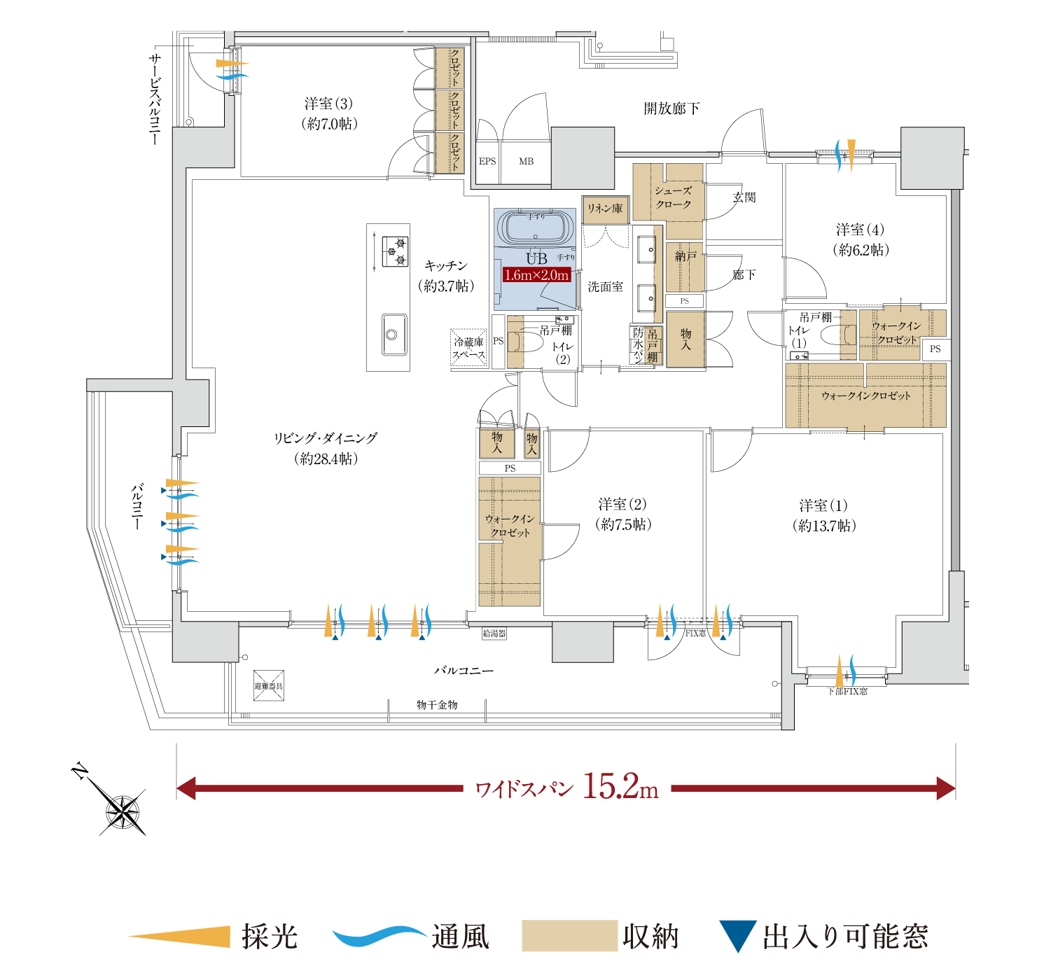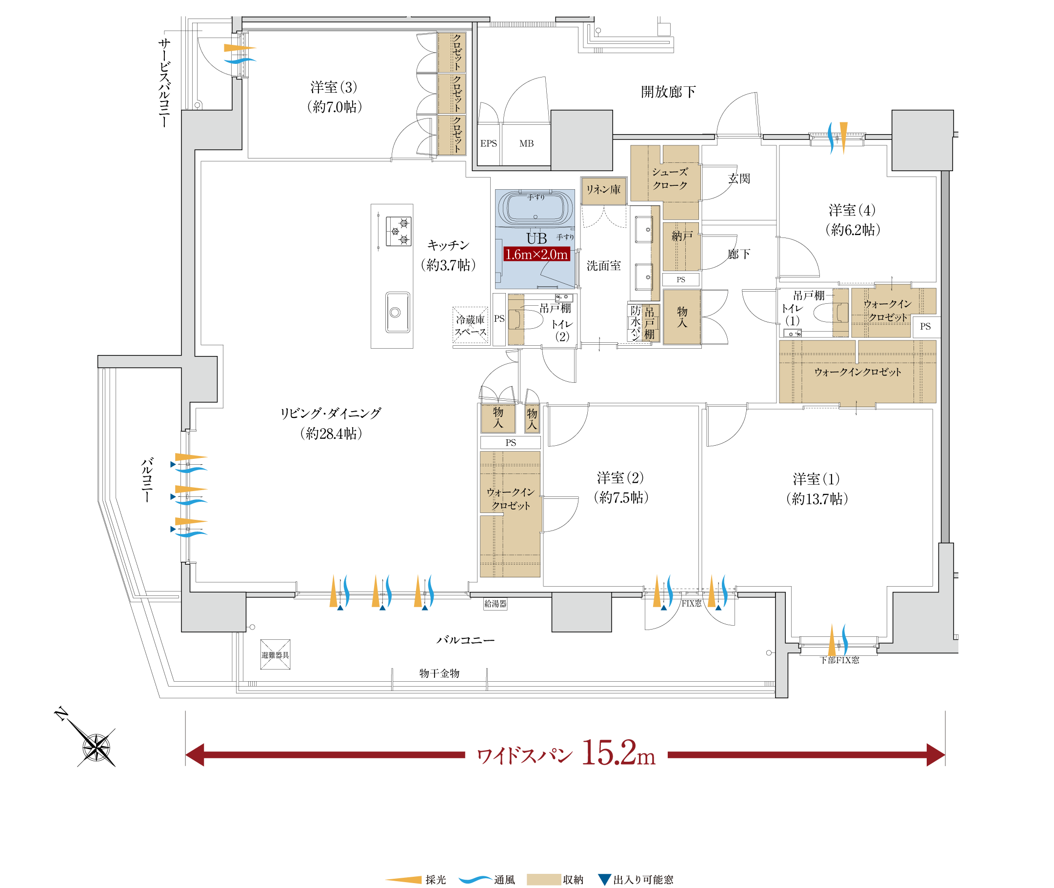 • ■ 3面採光・2面バルコニーの明るい角住戸