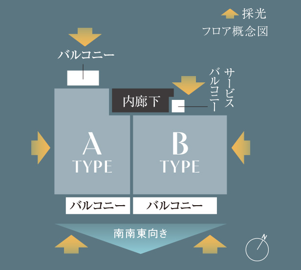 全邸が角住戸となる、1フロア2邸のプランニングを採用。角住戸ならではの3面採光がもたらす、明るく開放的な住空間が広がります。