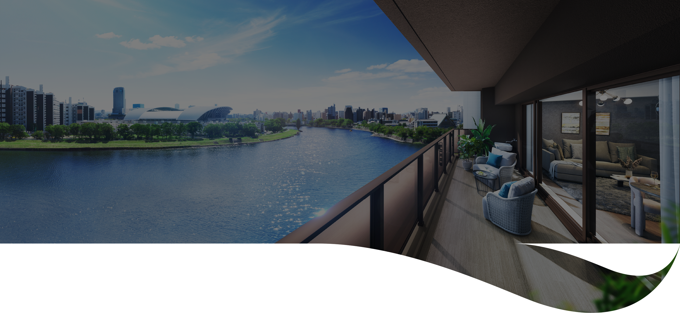 手すりには、川の流れをイメージした横ルーバーをあしらい、