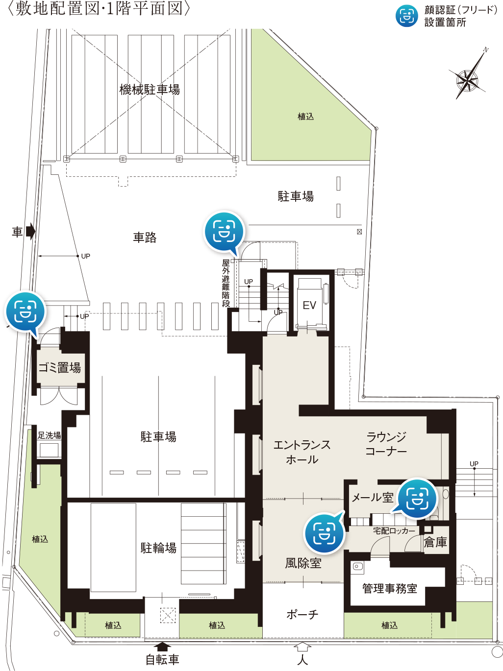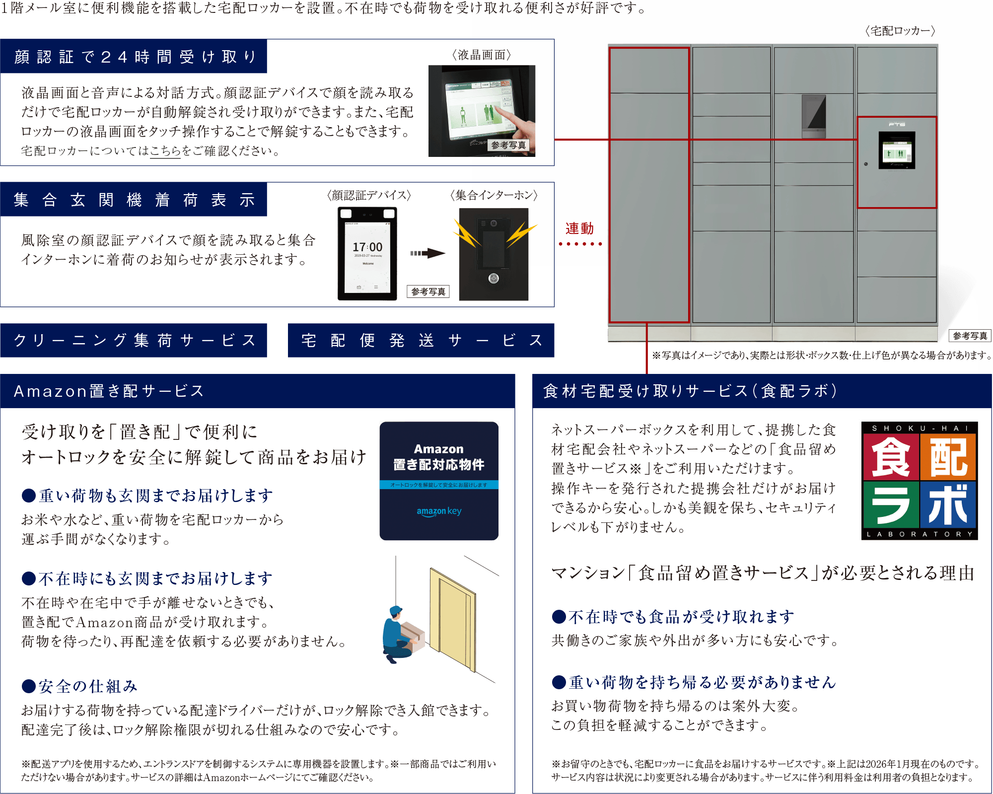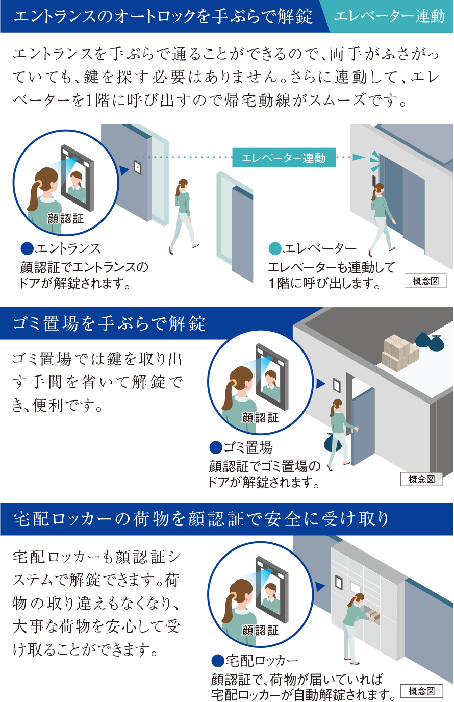 ※1.顔認証デバイス設置箇所は風除室・ゴミ置場・宅配ロッカー・その他ドア前の4箇所となります。詳しくは係員にお尋ねください。
