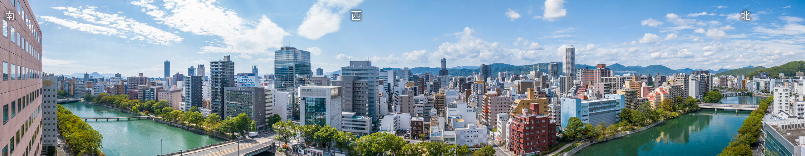 対岸の建物まで約110mの距離があり、開放的な眺望が広がります。